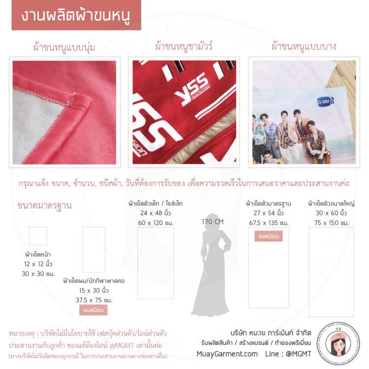 ผ้าขนหนู เหมาะทำเป็นของขวัญ ของแจกพรีเมี่ยม เพิ่มภาพลักษณ์ให้องค์กรของคุณ เหมาะสำหรับผู้ที่ต้องการทำขาย ทำเป็นผ้าเชียร์ศิลปิน แฟนคลับ เพิ่มคุณค่าให้กับสินค้าเพราะสามารถนำไปใช้งานได้จริงนะคะ